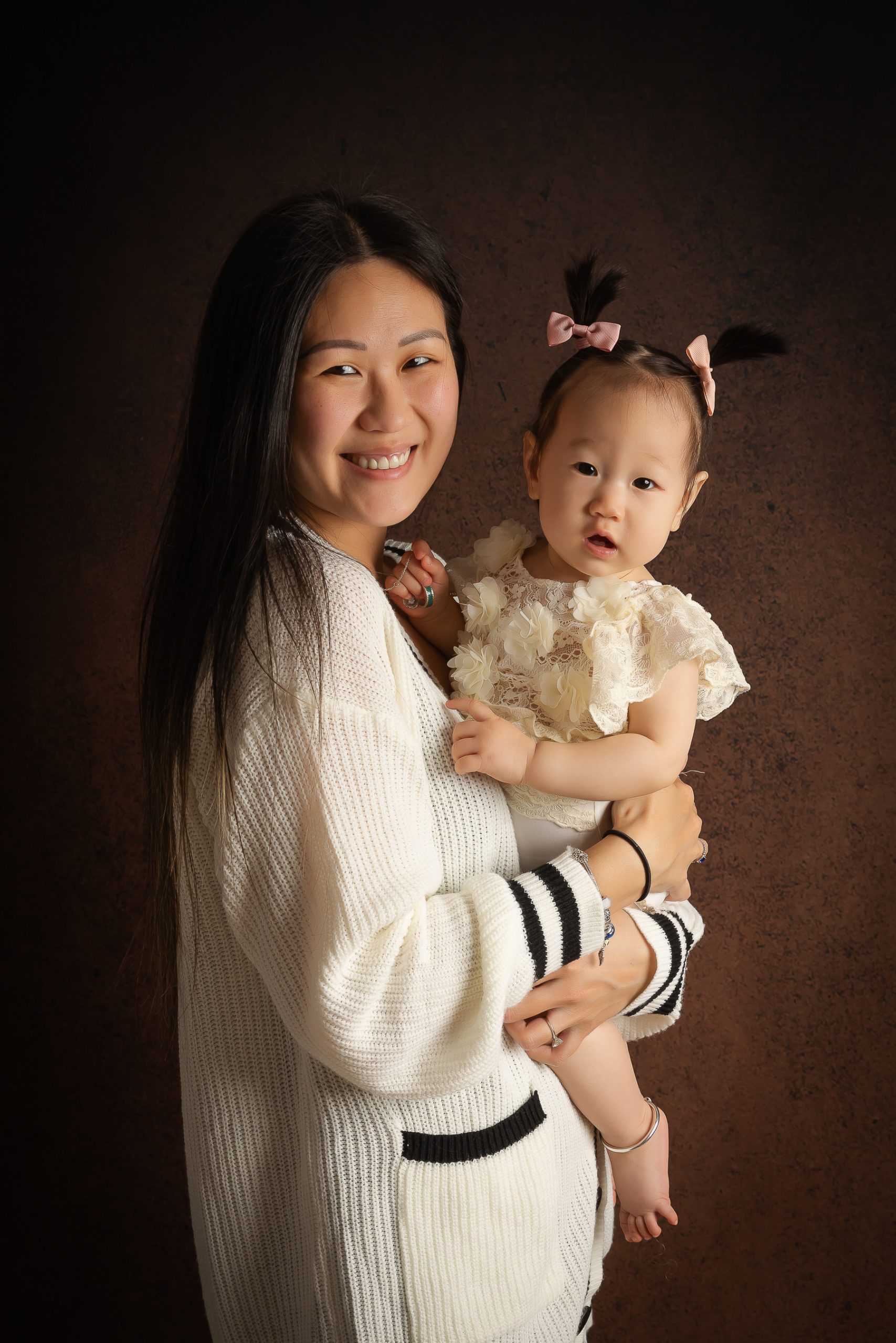 Ce que j’aime avec ce type de séances, c’est qu’il y a énormément de combinations de photos possibles. Même si la séance dure seulement 45 minutes, ce qui peut sembler court, nous avons largement eu le temps de réaliser toutes ces prises de vue. Et en plus, la petite puce a pu changer de tenue trois fois, ajoutant à chaque fois une touche différente aux clichés. Chaque tenue a apporté une nouvelle ambiance, offrant ainsi à la famille un large éventail d’images uniques et mémorables.