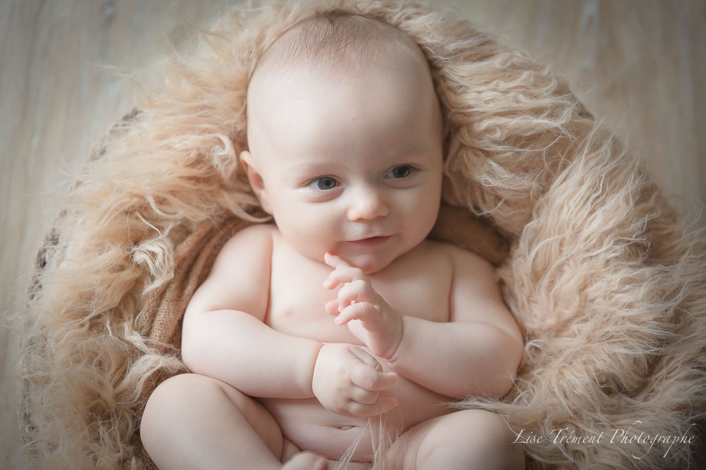 Je vous ai expliqué qu'il était trop grand pour une séance nouveau-né et vous avez opté pour une séance éveil.