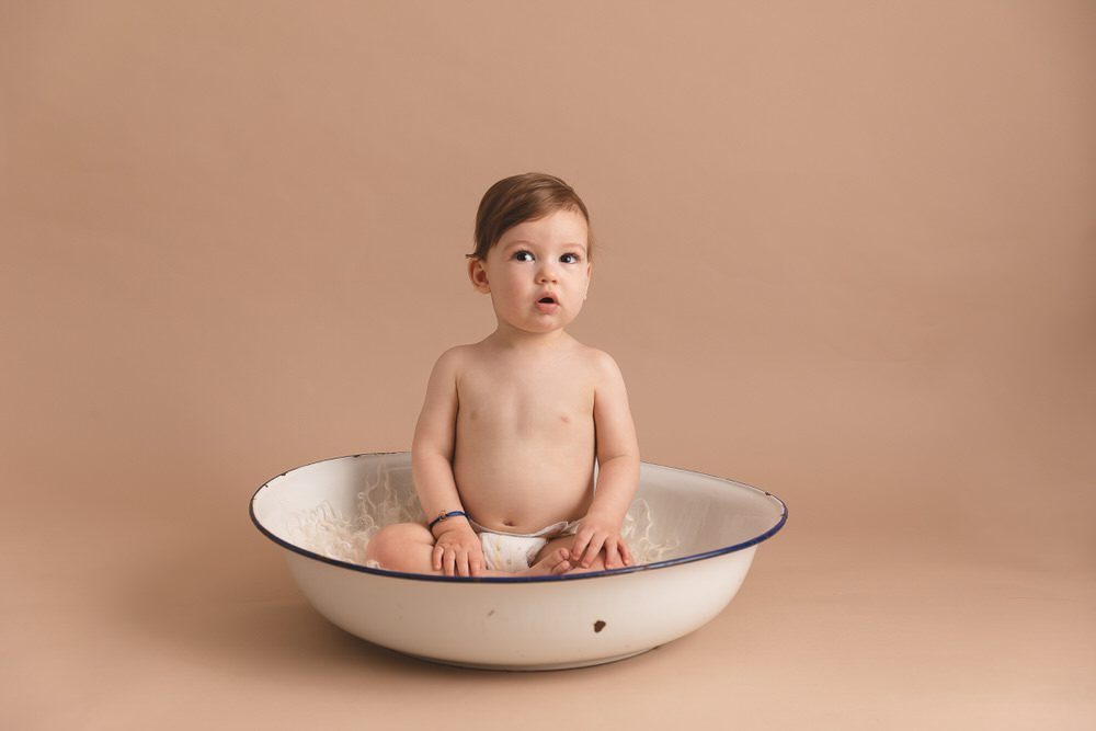 Mais par exemple sur cette deuxième photo, j’ai gardé le même contenant, mais les parents ont voulu un décor très épuré. J’ai donc changé le fond et enlevé tous les objets de décoration. Il reste l’essentiel : votre bébé.